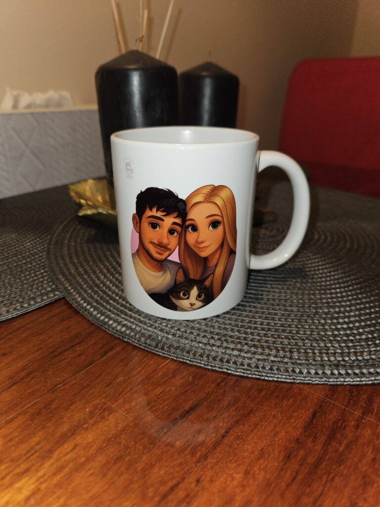 Csak tölts fel egy közös fotót, válassz mesés hátteret, adj hozzá egy kedves feliratot, és én elkészítem kettőtöket csodaszép, rajzolt formában. Minden illusztrációt kézzel ellenőrzünk és finomhangolunk, hogy a végeredmény tökéletesen szép legyen és igazán hasonlítson rátok. A bögre nem csak gyönyörű – hanem egy életre szóló emlék is. Reggeli kávé, esti tea… minden korty veletek kezdődik. ![]()