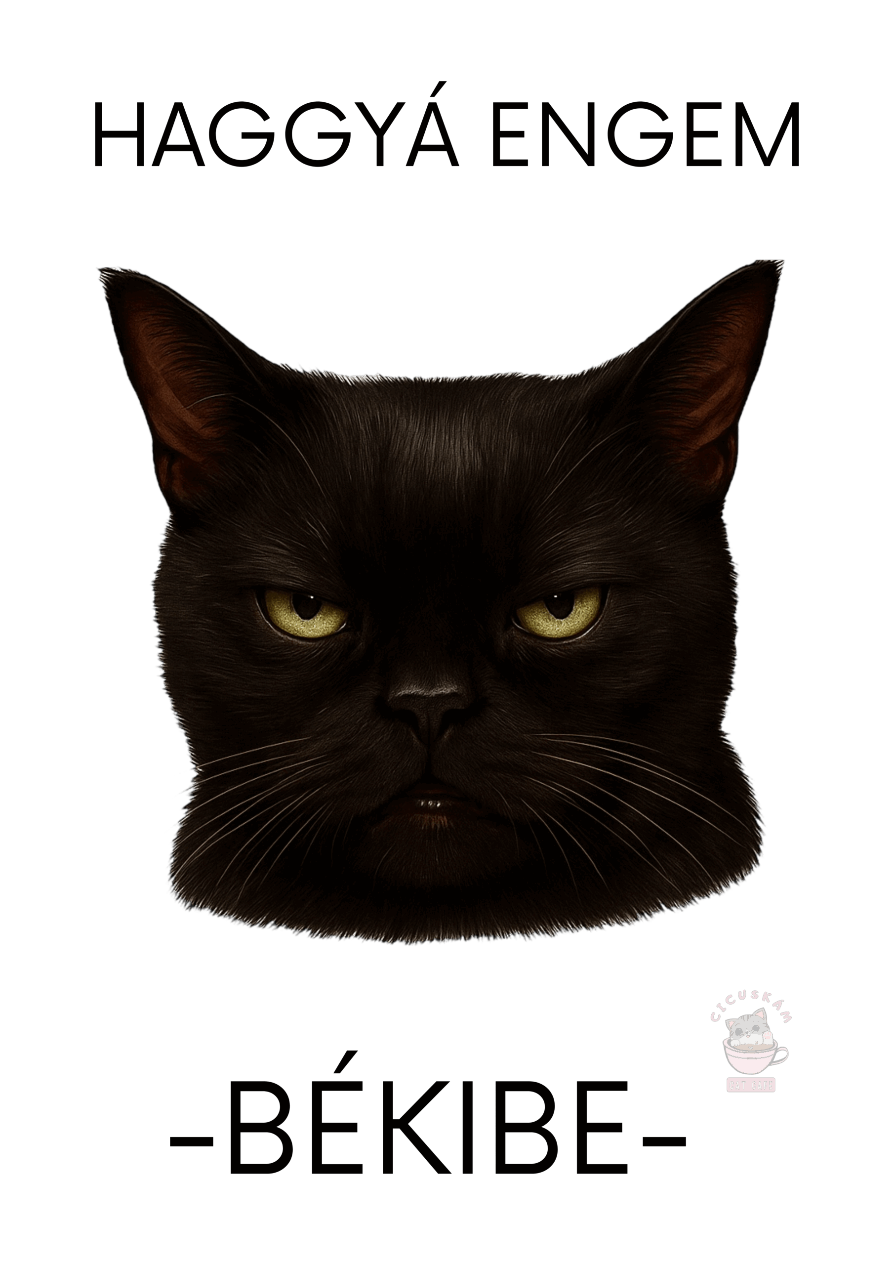 Ez a fekete macskás bögre tökéletes választás mindenkinek, aki néha csak egyedül szeretné élvezni a kávéját. A „Haggyá engem – békébe –” felirat garantáltan mosolyt csal az arcokra, miközben tökéletesen kifejezi a reggeli hangulatot. A Cicuskám Cat Café egyik lakója inspirálta, aki nem más, mint Panda